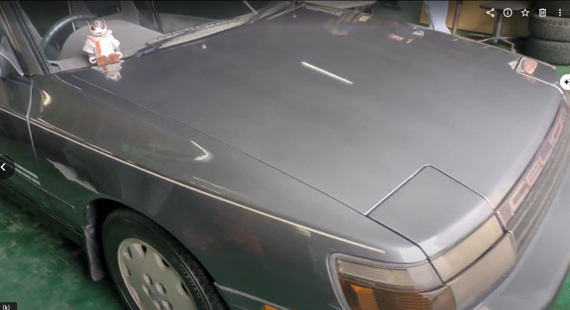 そして、ついに現車のセリカさんと対面です。レクサスのガンメタに塗装されたその姿は、38歳とは思えないツヤツヤのコンディションで私を待っていてくれました。