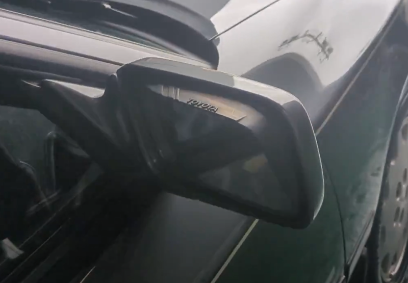 サイドミラーには希少な純正オプションの防雨カバーがついていました。