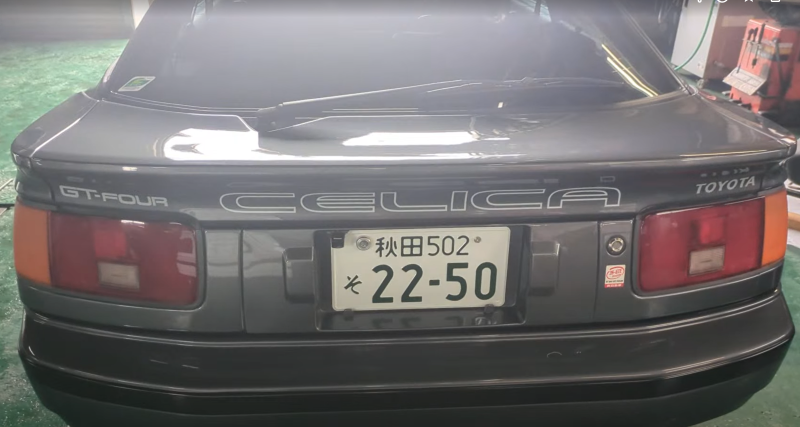 後部には「GT-FOUR」「CELICA」「TOYOTA」のステッカーが貼られています。