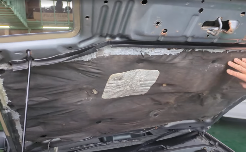 ボンネット裏の断熱材が経年劣化で落ちてきてます。これは後々交換しましょう。